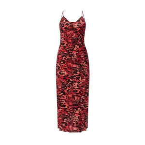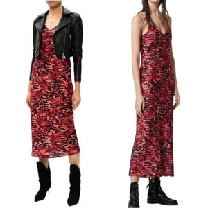 ALLSAINTS Hera Ambient Animal Print Slip Dress Red Size L NWT