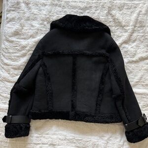 Farley Black Shearling Moto Inspired Trophy Jacket.