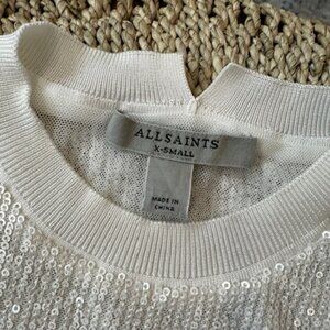 ALLSAINTS Juela Women's White Sequined Stretch Sweater Lined, XS