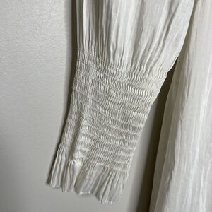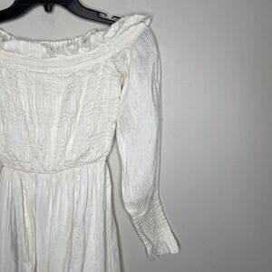 ALLSAINTS Lary Dress Women 2 Ivory Off-Shoulder Midi Shirred Bodice Linen Silk