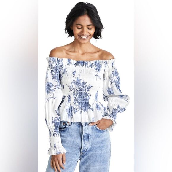This season, AllSaints welcomes a new print, the Buruberu, meaning bluebell and symbolising gratitude. The linen-silk composition of the Lara Buruberu top makes the perfect canvas for this intricate print, inspired by the Japanese art of Kintsugi where broken pieces of porcelain are fixed back together with gold. Perfect for wearing on hot summer days, its off-the-shoulder silhouette is effortlessly elegant with just the right amount of drama, thanks to the blouson sleeves.