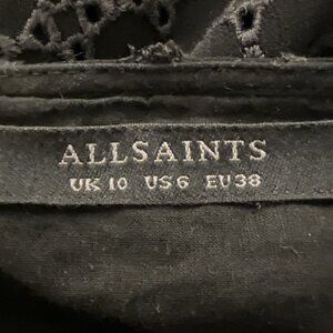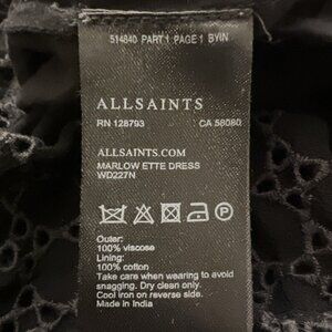 ALLSAINTS Marlow Ette Black Dress Size US 6 / EU 38 V Neck Belted Flutter Sleeve