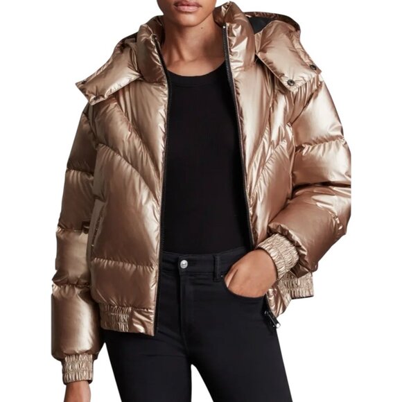 NWT ALLSAINTS Mika Hooded Metallic Down Puffer Jacket 10 Women Medium Ski Edgy Streetwear