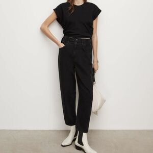 ALLSAINTS Mira Tee Cropped Side Drawcord Short Sleeve 100% Cotton Black XS NWT