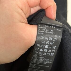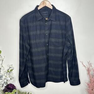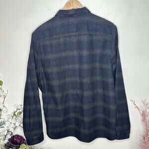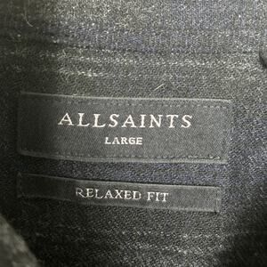ALLSAINTS Newhalen Shirt Wool Blend Check Plaid Gray Navy Blue Sz L {3Y29}