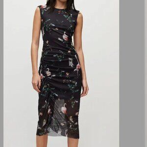 ALLSAINTS Nora Fabia Graphic-print Midi Dress In Black/pink US SIZE 8