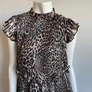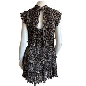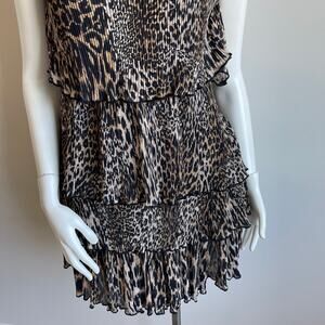ALLSAINTS Plisse Leopard Print Tiered Mini Cocktail Party Dress US 4