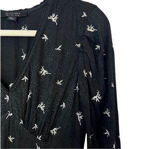 ALLSAINTS Rosi Embroidered Mini Dress Grunge Floral Long Sleeve V-Neck Crepe 4