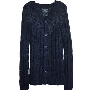 Gorgeous, Incredibly Warm & Cozy, Chunky Cable Hand Knit With Norwegian Inspired Gray Pattern, 6 Buttons Down, V-Neck, Long Sleeves, Black With Silver Color, Wool/Alpaca/Acrylics/Nylon Blend, Super Stylish & Perfect For Layering. Sz.S Excellent Preowned Condition, Please use my photos as part of my description. Due to different camera and light color of the item can be slightly different. Ac