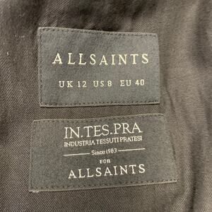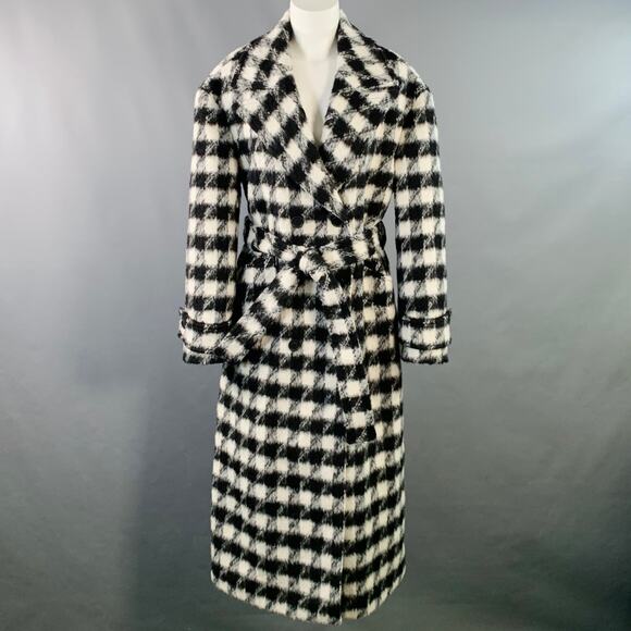 ALLSAINTS Size 8 Black White Wool Blend Checkered Double Breasted Belted Coat