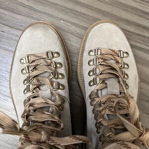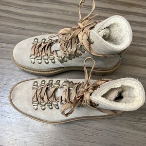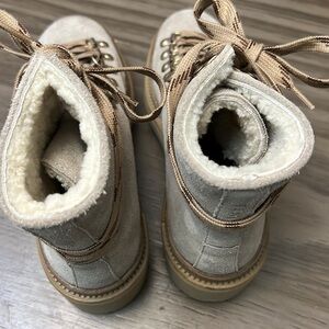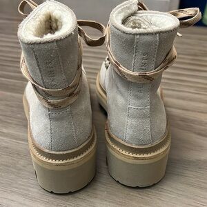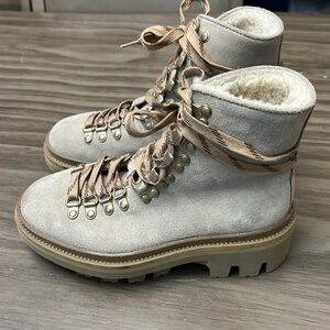 Allsaints”Wanda” genuine leather and shearling lace up lug sole combat chunky boot grayish/tan size 35= 5
