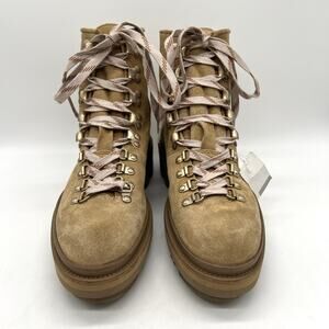 ALLSAINTS Wanda Shearling Boot Womens 9 Sand Brown Suede Lace Up Hiker Winter