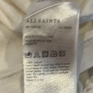 ALL SAINTS Women’s White Short Sleeve with Ruffle Sleeves Tee - Size S. This tee in crisp white offers a classic short sleeve design, perfect for everyday wear. Crafted with quality materials, it ensures comfort and style for any casual occasion. 16.5” pit to pit and 22” shoulder to front hem. Gently worn.