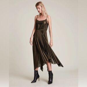 ALLSAINTS Lerin Slip Dress in metallic gold black small