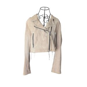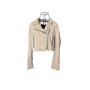 ALLSaints Suede Biker Jacket Tan Size XS