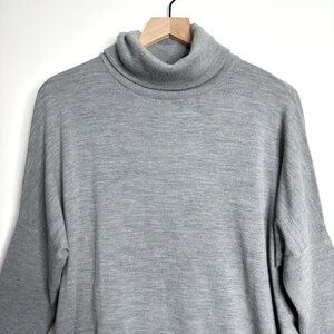 - Keywords: long sleeves, drop shoulders, turtleneck, pullover, soft knit, gray, minimalist, workwear, casual