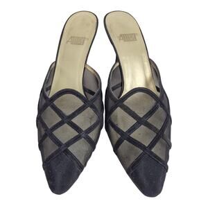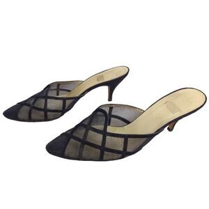 ALLURE Black Slip On Mules Size 7.5 Black Mesh and Suede Trim High Heels Formal