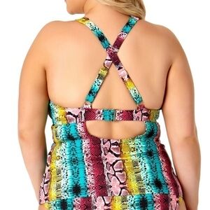 ALLURE Women's Multi Color Stretch Ruched Scoop Neck Tankini Swimsuit Top