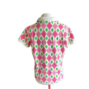 ALLYSON Whitmore Golf Polo Pink, White & Green Pattern w Golf Tees and Clubs, PL