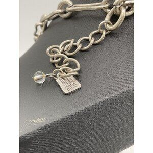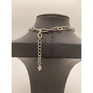ALM Soho Silver Tone Chain Necklace With Metal & Leather Tassel