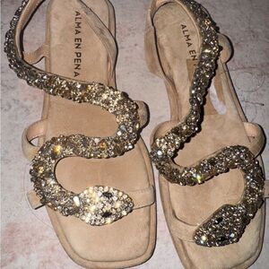 ALMA EN PENA crystal rhinestone dress shoes FLAT sandals snake open toe platform
