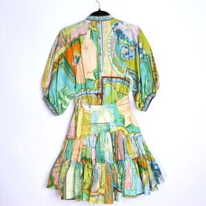 ALÉMAIS Atlas Linen Mini Dress Multicolor Tiered Skirt Short Sleeve Women's 2