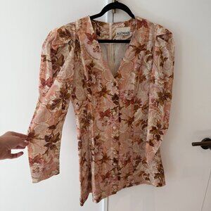 ALÉMAIS Floral Print Mini 100% Linen Dress