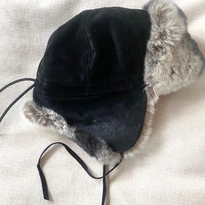 ALMAR, Canada, Suede leather trapper hat with rabbit fur, black, grey size M