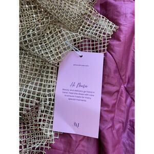 ALMOND MUSE ISABELLA Rhinestone Mesh Square Neck Maxi Dress Gold Ball Gown Sz S