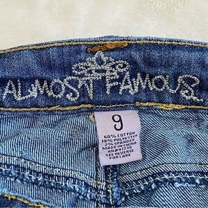ALMOST FAMOUS / Dark Washed Factory Distressing Boot Cut Mid Rise Jeans Size 9