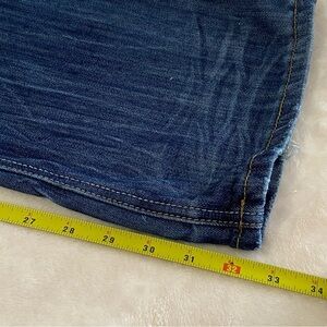 Color blue dark washed with factory distressing eyelash bleaching throughout