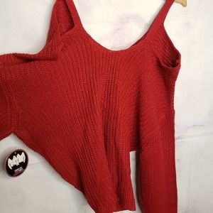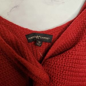ALMOST FAMOUS red knit twisted cold shoulder pullover sweater