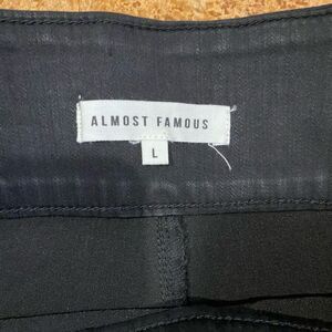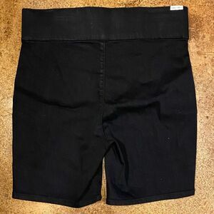 Like new Almost Famous black high waist, pull on flat front smooth stretch shorts. EUC, great shape, size Large, cotton spandex blend, wide elastic band waist, approximately 7” inseam. See pictures for details.