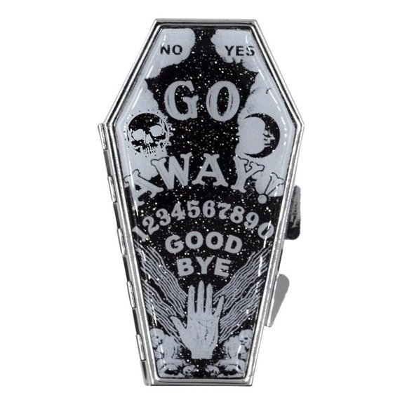 ALMOST GONE! Ouija Go Away Coffin Shape Standing Compact Makeup Mirror Skull NEW