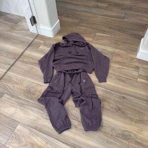 ALO Accolade Hoodie & Sweats! Set sold together. Both are size, X small, color is Raisinette! Lightly worn only twice around the house, also washed! Super cozy and very popular! ALO runs a little big so this outfit is a comfortable loose fit!