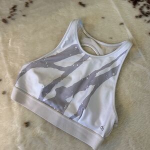 Great for really moving. Everything is tucked in, though low compression. Great for Size A-D chest. Cute pattern. Hits below the bra line for more coverage.