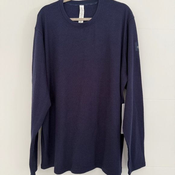 ALO Mens Waffle Long Sleeve Crew Neck Sweater Navy Blue NWT Size 2XL
