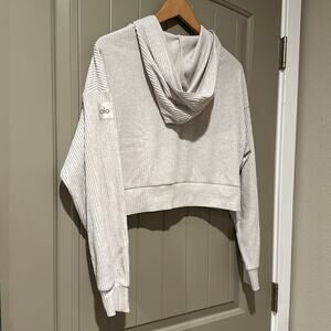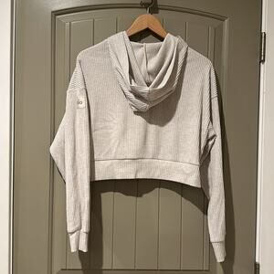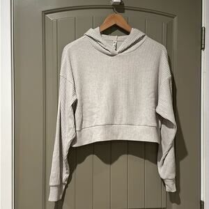 Soft ribbed knit with a relaxed, cropped silhouette and slits at sides. Great condition. Color ivory.
