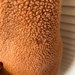 Excellent condition with the only noted flaw is a small area on the back of the left arm where the Sherpa is a little darker - the fabric in this area is not missing it is just slightly darker - size smaller than a penny. Not noticeable and has not been spot cleaned. (As seen in pictures)