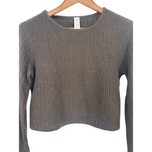 ALO Brown Cashmere Plush Waffle Cropped Long Sleeve & Cashmere High-Waist Plush Waffle Pant Set in Espresso