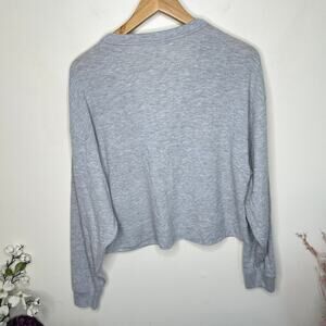 ALO YOGA Alolux Soho Cropped Henley Top Heather Gray Sz M {OO27}
