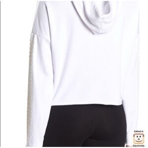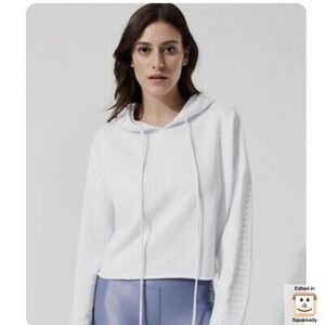 ALO YOGA Boxy Cropped Hoodie with white beading on arms; raw hem; White; Size Large;