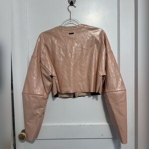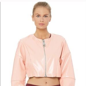 ALO YOGA Cropped Faux Patent Leather Liquid Jacket in Nectar NEW $248 Size S