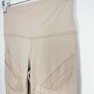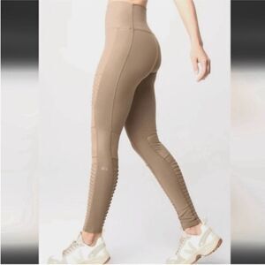 Cool tan color leggings by Alo. Moto style design. Full ankle length. High waisted. Great preowned condition with very light signs of wear. Women’s size small.