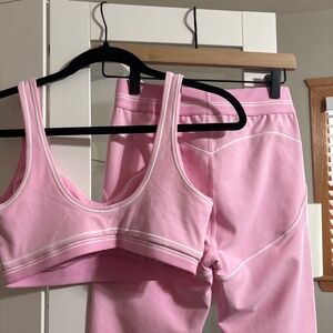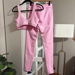 ALO Yoga Airbrush High-Waist Heart Throb Legging + Bra Set Sweet Pink size Small