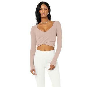 ALO Yoga Amelia Luxe Long Sleeve Crop Top in Buff