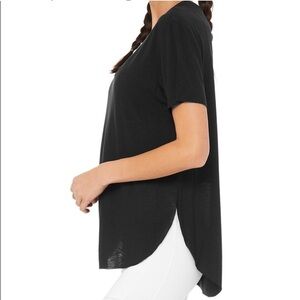 ALO Yoga Black Lithe Lightweight Scoop Bottom Rolled Hem Everyday Tee Shirt