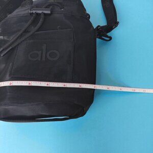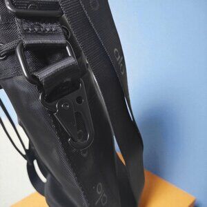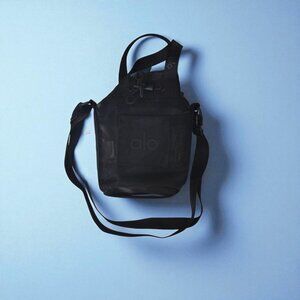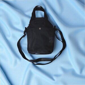 Sleek black crossbody bag. Features adjustable strap. Stylish and functional.