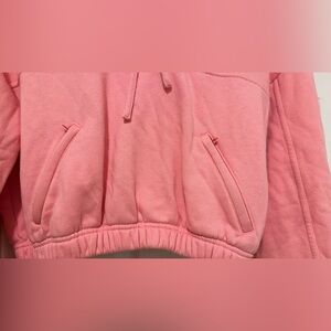 Cozy blush hoodie with zip closure. Soft fabric blend for comfort.