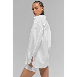 ALO Yoga Cotton Real Deal Button Up Long Sleeve in White